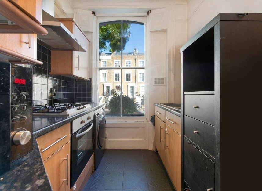 A two bedroom apartment on the raised ground floor of a Victorian conversion in Newington Green. Being offered with a share of the freehold, this home is perfect for first time buyers looking to get into the area.