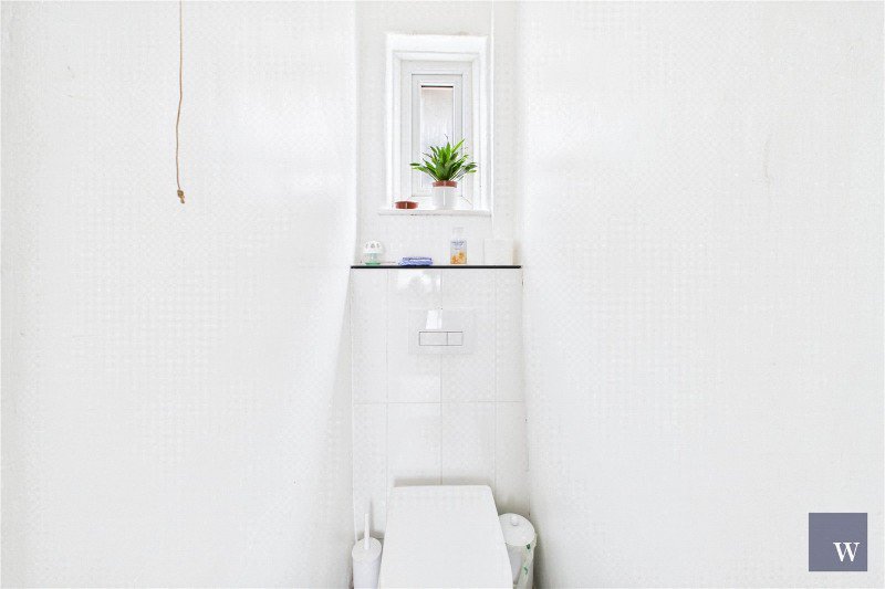 The accommodation comprises a bright reception room currently used as a second bedroom, a generous double bedroom, a separate kitchen and dining area, and a recently refitted shower room with a separate WC. The home enjoys high ceilings, large windows, and a light, airy feel throughout, offering a practical layout ideal for both first-time buyers and investors alike.