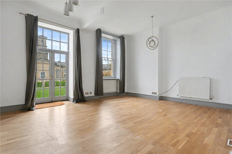 At the heart of the property lies the impressive open plan living/dining space. Measuring over 18ft in width, this generous area is perfect for both everyday living and entertaining. Elegant double doors open directly onto your very own private patio and garden, seamlessly extending the living space outdoors and offering beautiful views over the historic building and lush green surroundings beyond, a truly picturesque backdrop.