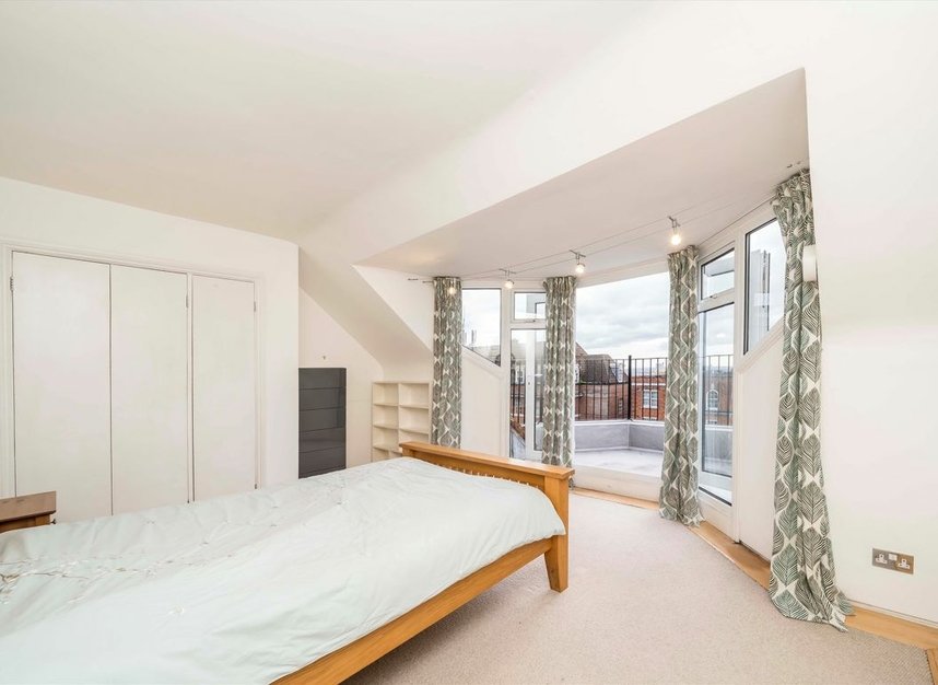 A beautifully presented one-bedroom apartment situated on the fourth floor of this prestigious mansion block, complete with a lift and access to well-maintained communal gardens. The property enjoys exceptional views across London, offering an abundance of natural light and a wonderful sense of space.