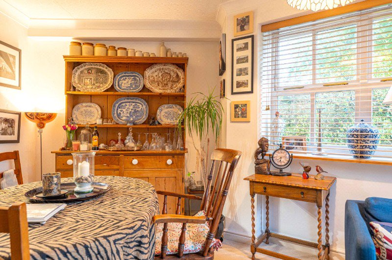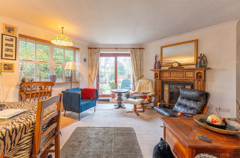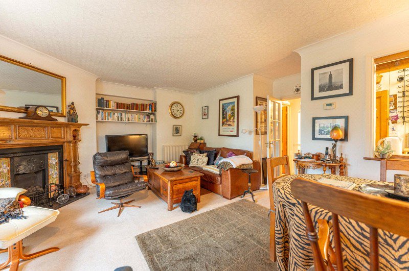 The heart of the home is a beautifully proportioned open-plan reception room, bathed in natural light from double windows and sliding French doors that open directly onto the garden. With ample space for both a large dining table and a comfortable lounge area, and a central fireplace offering a cosy focal point, this room is perfect for both relaxed living and entertaining.