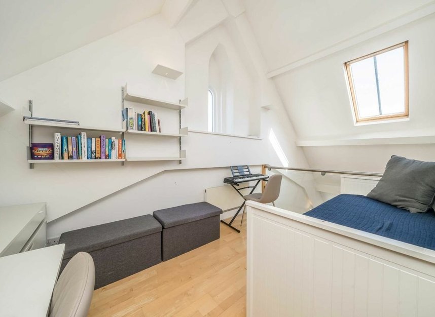 Full of character and charm, this apartment is nestled in a converted church and spaciously arranged over three floors. There is a large reception room, a modern kitchen, two bedrooms, two bathrooms and a study area. This property is offered to the market with no onward chain.