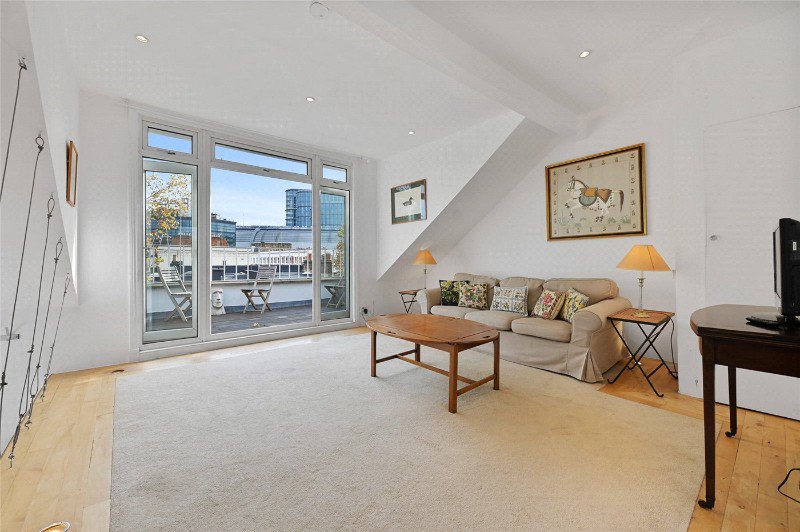 Well presented throughout in a modern, contemporary style, the property benefits from accommodation which comprises entrance hall, bedroom, bathroom, kitchen and reception room with French doors leading to a private south east facing roof terrace spanning the width of the flat, with views towards Blythe House.