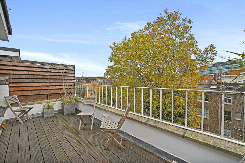 A superb one bedroom flat on the top floor of a mid-terrace Victorian house with a fabulous private roof terrace, with rooftop views.
