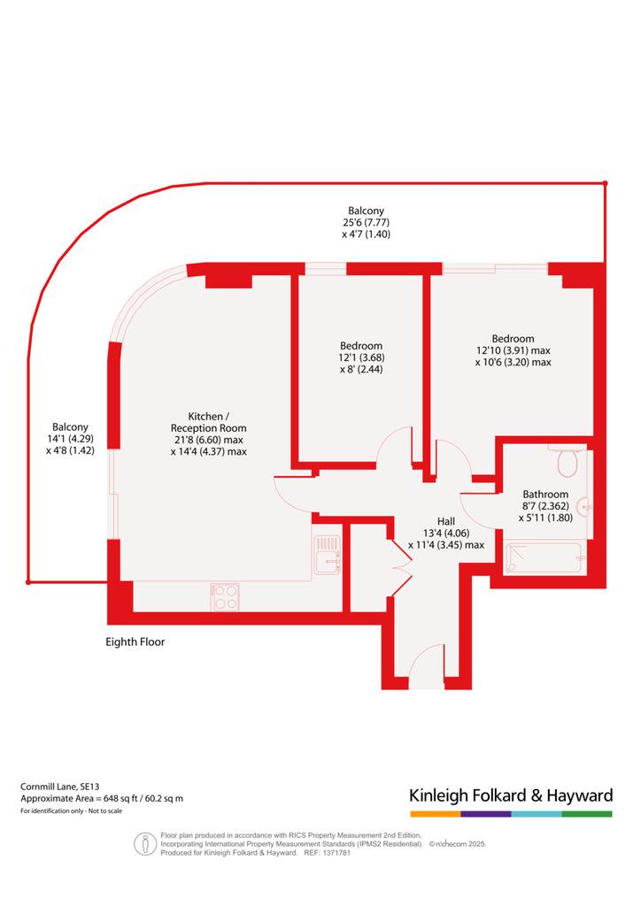 - 648 sq ft / 60.2 sq m