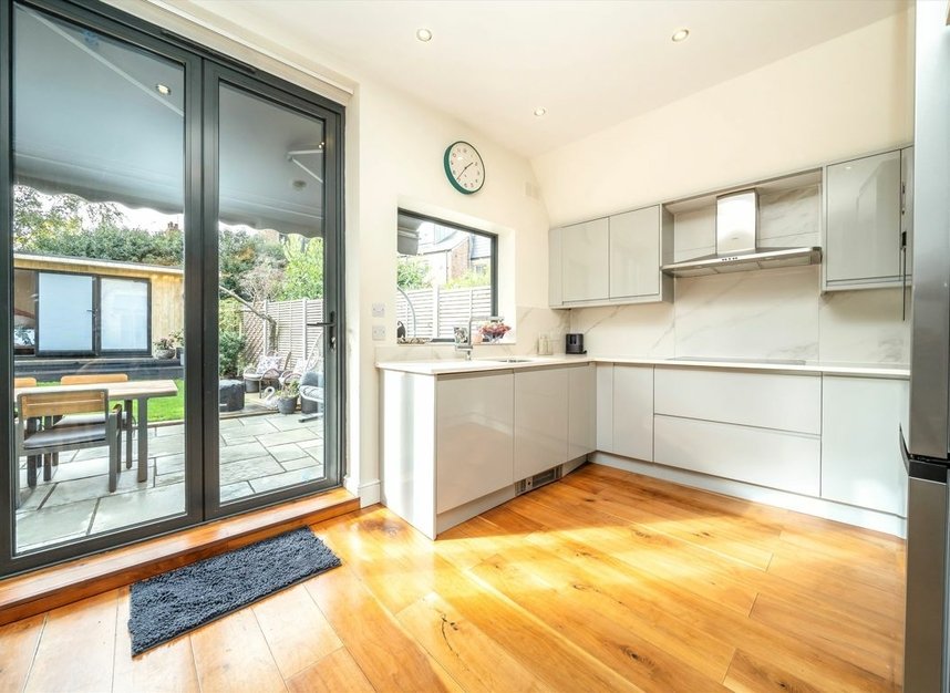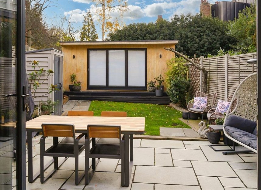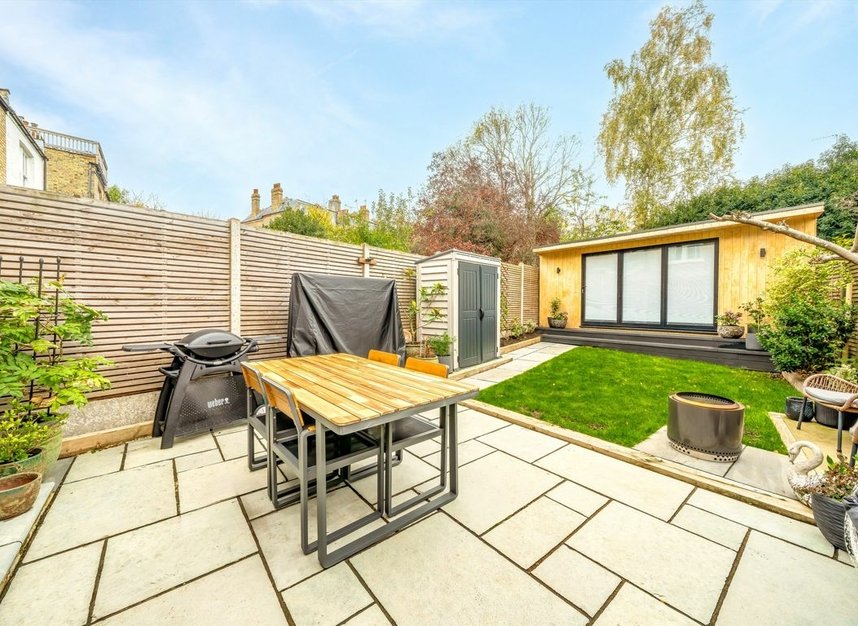 A bright and spacious, turn-key ready Edwardian three-bedroom ground floor garden flat, featuring a utility room and two newly renovated bathrooms. The open-plan reception, kitchen and dining area flows seamlessly onto a south-west facing private garden with a versatile studio. The property showcases beautiful period features throughout, including high ceilings and original fireplaces.
