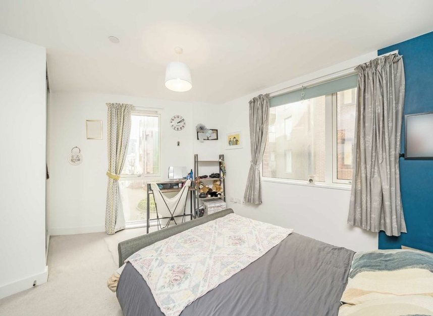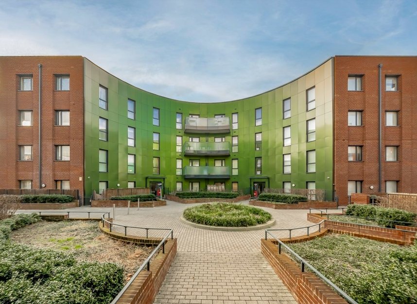 Set within a modern secure development is this one bedroom flat on the first floor with lift access. Kept in excellent condition throughout, the property has a south facing balcony and communal garden, fully integrated kitchen, allocated parking and bike storage, and is available chain-free.