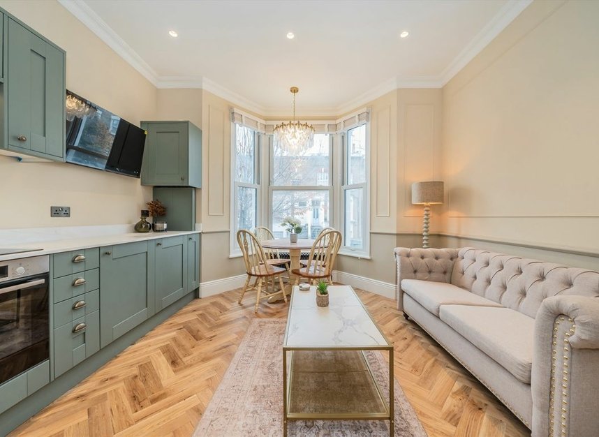 A stunning, recently refurbished raised ground flat set in a Victorian conversion. This modern flat comes complete with two double bedrooms, an open plan kitchen/reception and wooden flooring throughout. This property is being offered chain free.