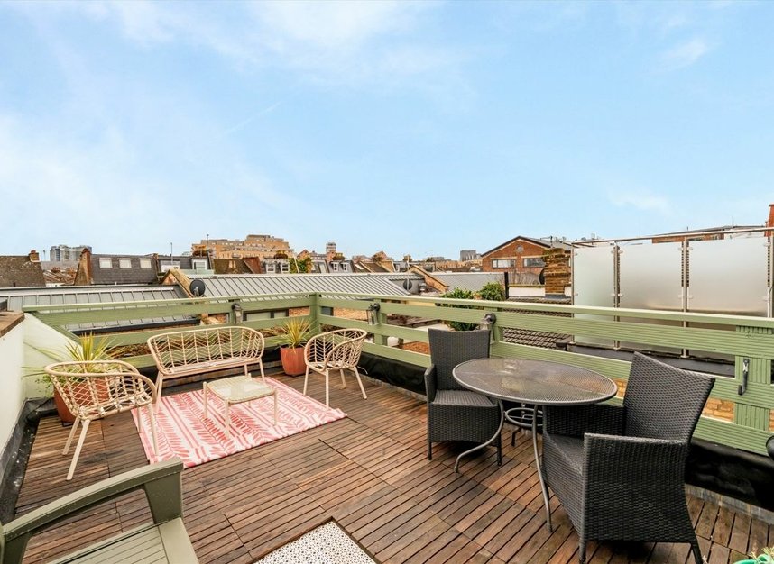 A meticulously finished split level maisonette with a large private south facing terrace and it's own entrance. The impressive mezzanine kitchen dining area over looks the living space which offers high ceilings and an incredible amount of light throughout.