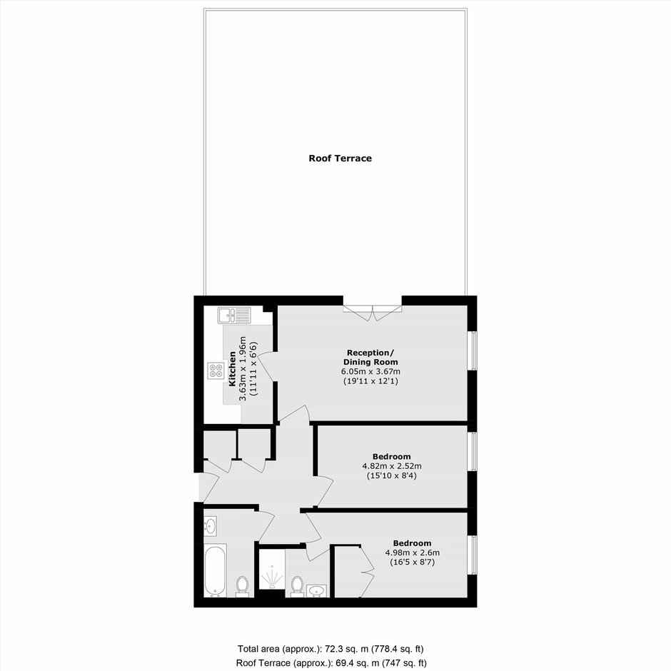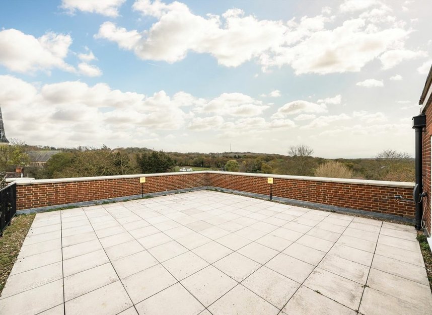 Set within a modern purpose-built development, this beautifully presented two bedroom, two bathroom top floor flat offers stylish living with a truly exceptional roof terrace.