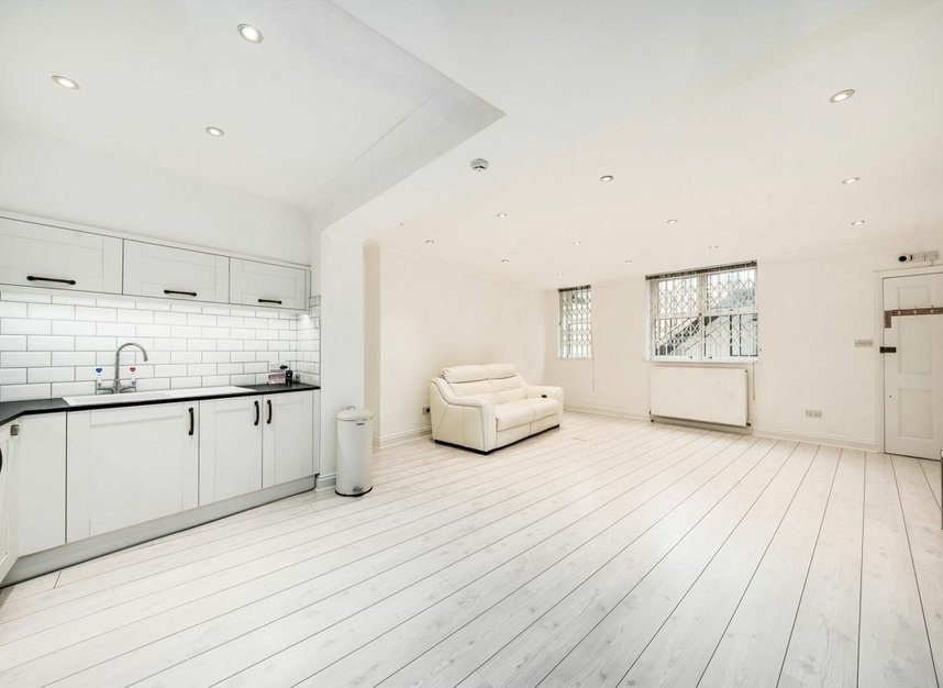 A flat set in a white stucco-fronted conversion in Maida Vale. This modern, well-presented property comes complete with one double bedroom, open plan kitchen/reception, newly integrated Zanussi appliances and a storage room. Benefiting from a private entrance and outside space. This property is being offered chain free.