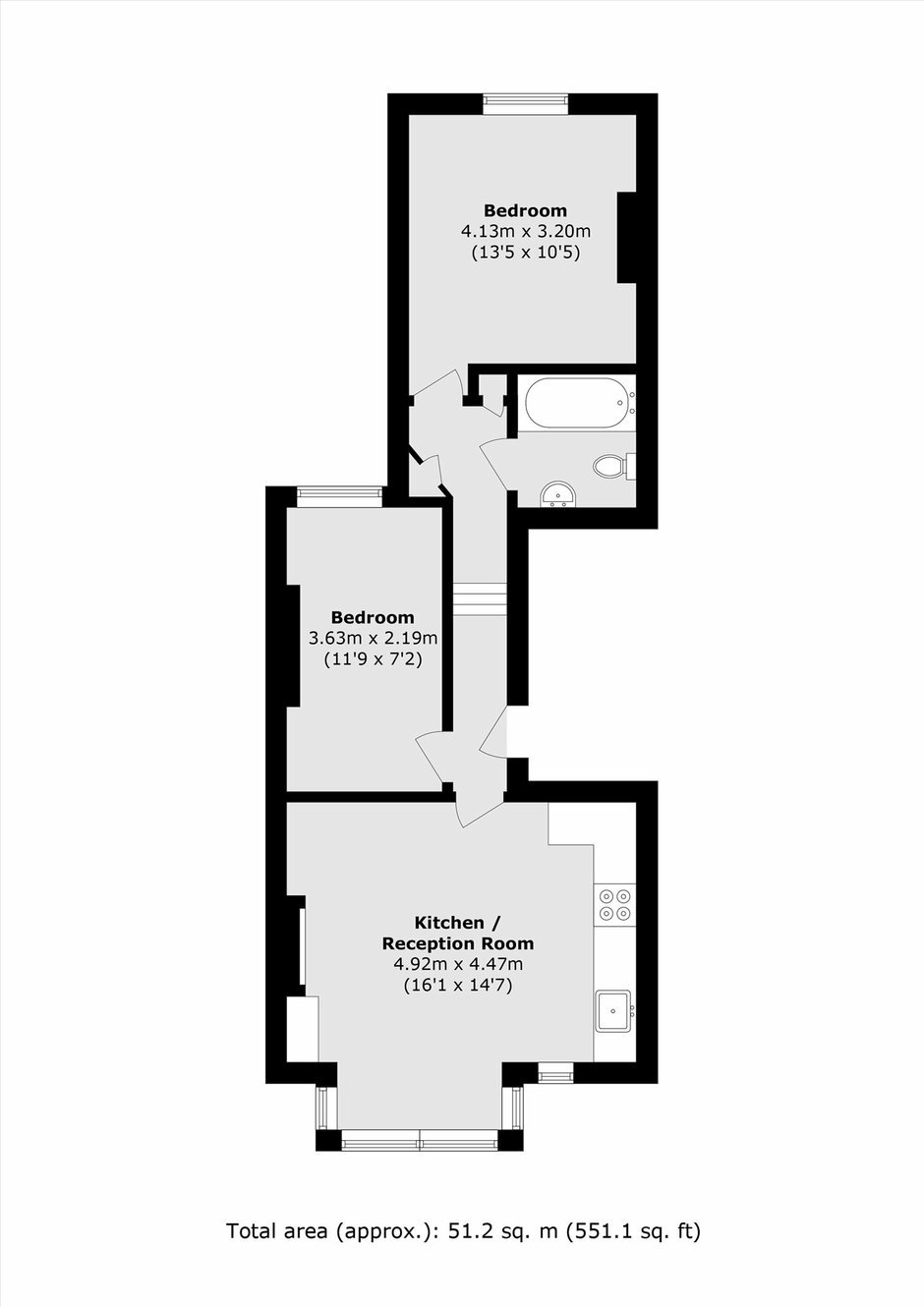 This first-floor lateral period conversion is presented in excellent condition throughout and offers a spacious open-plan reception room with a well appointed brand new kitchen, two generous double bedrooms, and a contemporary bathroom. The property is offered chain free and complete with a share of the freehold.