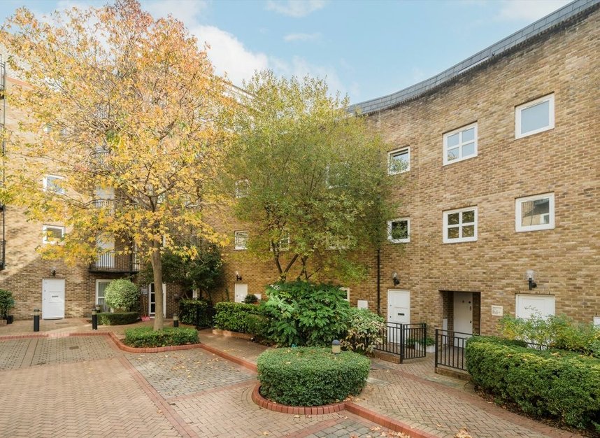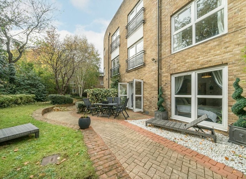An immaculately presented ground-floor apartment, offered chain-free within a gated development in Angel. The bedroom and reception both open directly onto a private outdoor space, providing a serene green outlook. The property further benefits from an allocated underground parking space and an on-site day porter.