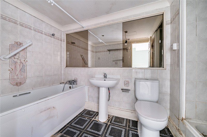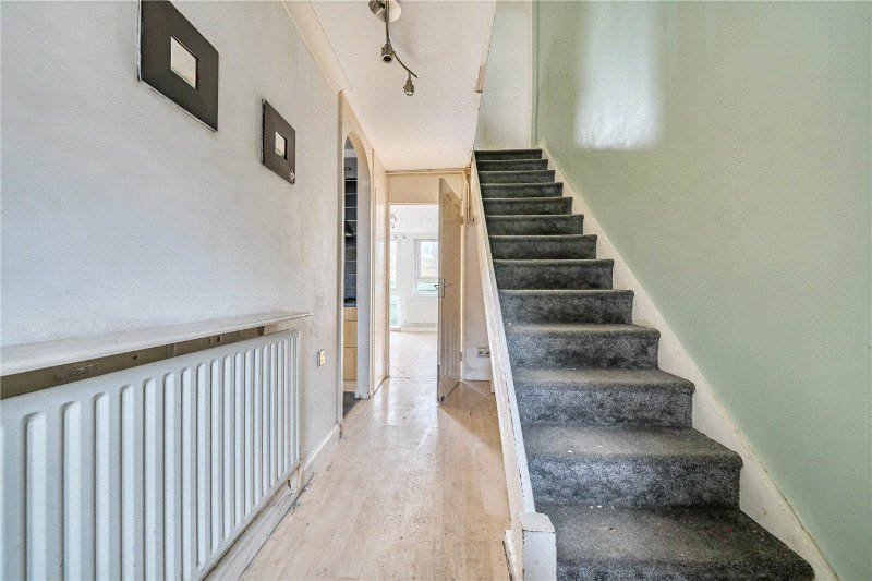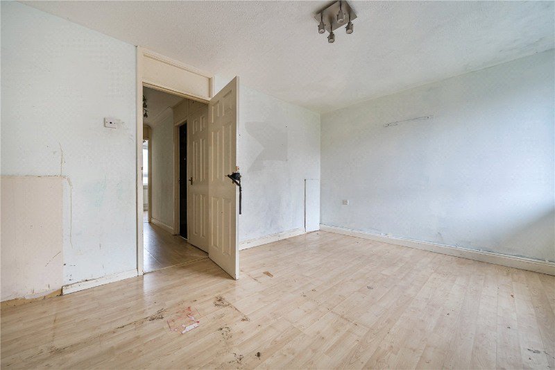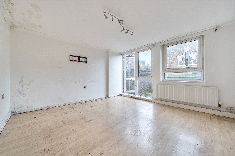 Requiring full modernisation throughout, the property provides a true blank canvas for an ambitious buyer with vision. The current layout comprises a separate kitchen, a spacious living room, and access to a private rear garden ideal for outdoor entertaining or family use.