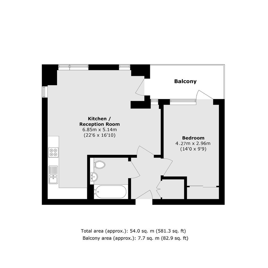 A rarely available one-bedroom home located on Thomas Road, offering an open-plan reception and kitchen, a private balcony, and stylish modern interiors throughout.