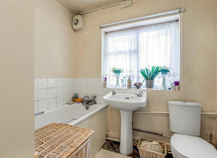 The kitchen has been updated in recent years with black wall tiles, white gloss base and wall units as well as a granite effect worktop. The lounge features two windows, including a bay window flooding the room with natural light. The double bedroom faces the back of the property providing a leafy outlook.