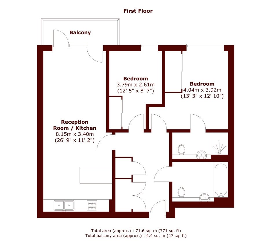A Two bedroom, two bathroom apartment with a private balcony. The large entrance hallway benefits from ample storage. There is the master bedroom with en-suite, a further double bedroom, luxury family bathroom suite, large open-plan kitchen / reception which leads to the private balcony. Both bedrooms benefit from built-in storage and floor-to-ceiling windows.