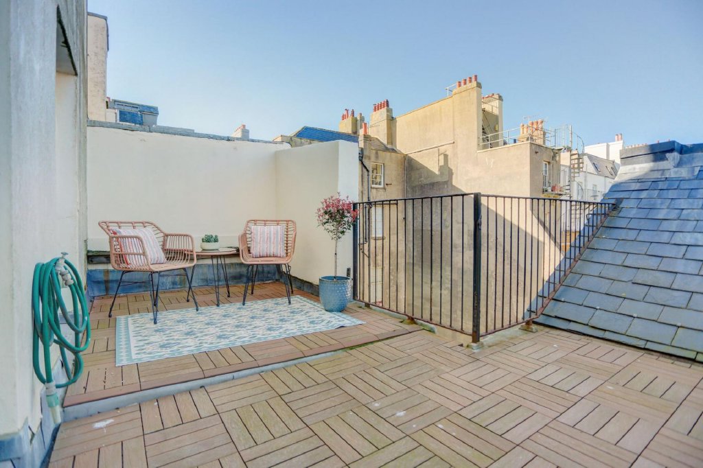 From the primary suite, doors open out to provide exclusive access to a roof terrace, an ideal space for a bistro table and chairs, perfect for enjoying an evening drink in the summer months.