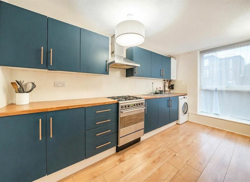 A split-level apartment with a west-facing reception and private garden. The entrance level consists of a large living area, with ample space to dine, as well as a spacious modern kitchen with fully integrated appliances. The first floor offers two double bedrooms and a modern bathroom with a separate WC. The apartment provides a wealth of natural light throughout.