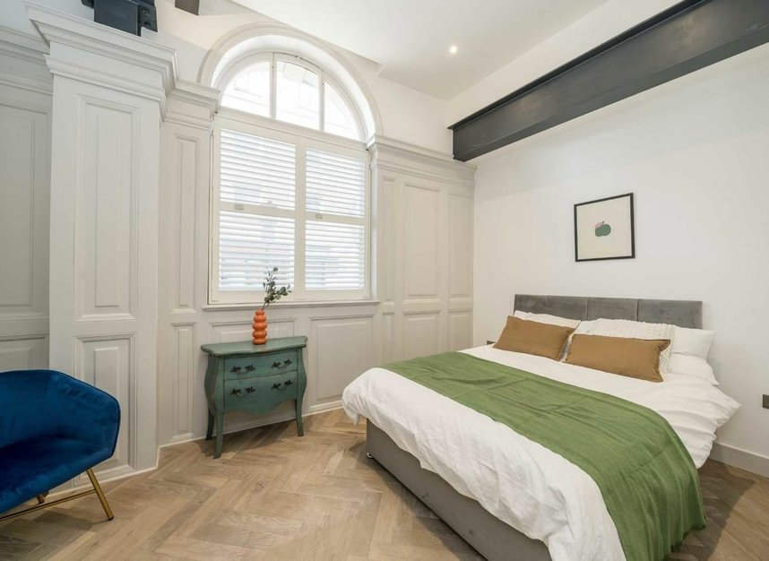 A beautifully presented two bedroom apartment set within a conversion of a former bank. Finished to a high specification the apartment blends modern living with character features. The apartment has high ceilings and large windows flooding the space with natural light. The open plan kitchen /living/dining is fitted with sleek modem units and integrated appliances. Both bedrooms are generously proportioned complimented by a contemporary bathroom. *Images of show home*