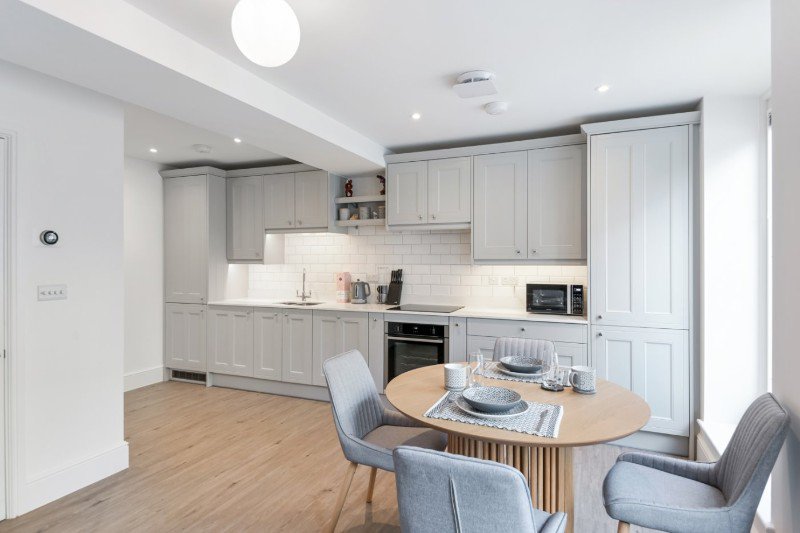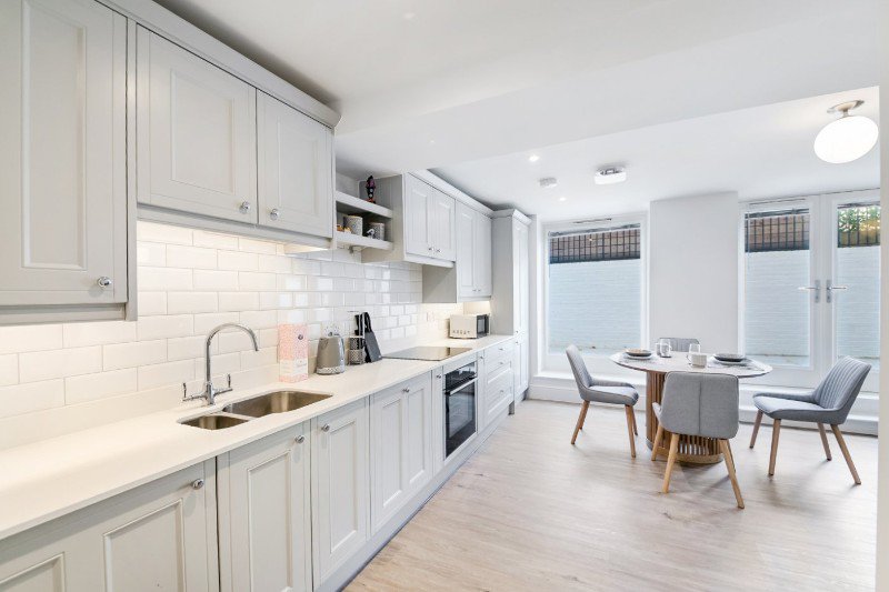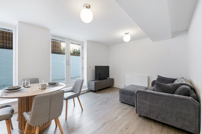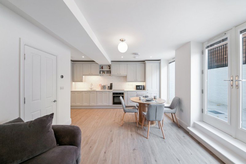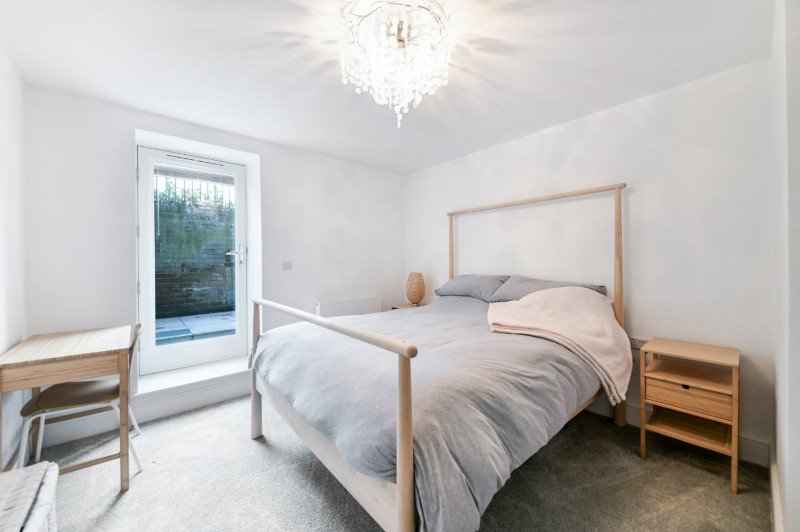 The property enjoys a charming private patio and terrace, a bright and spacious open-plan reception room, a contemporary bathroom complete with underfloor heating, and the added benefit of off-street parking.
