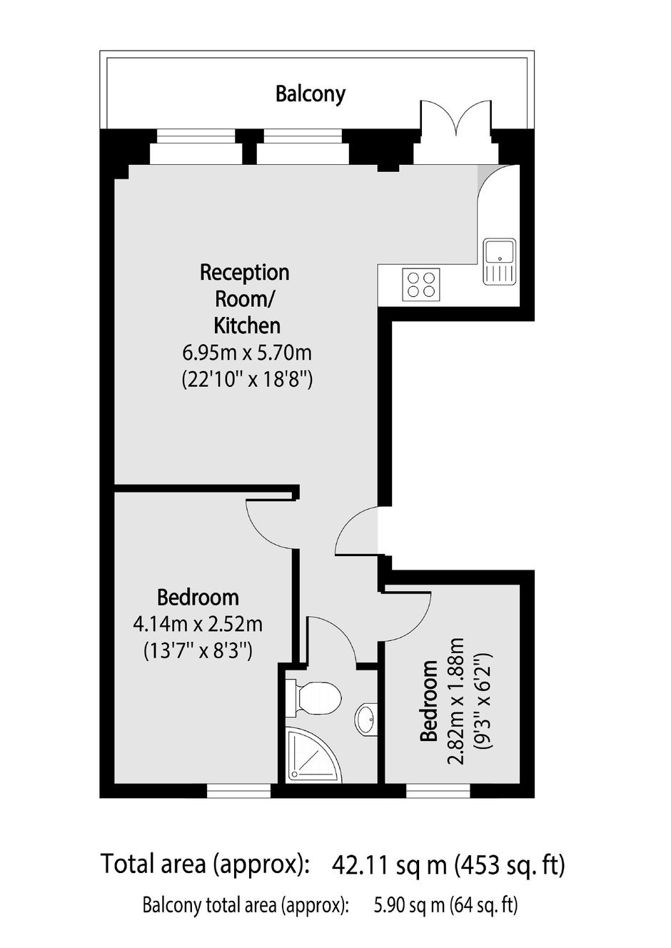 A two bedroom first floor apartment with a fantastic full length balcony. This property has a light and spacious living room with kitchen, high ceilings and is offered with no onward chain.