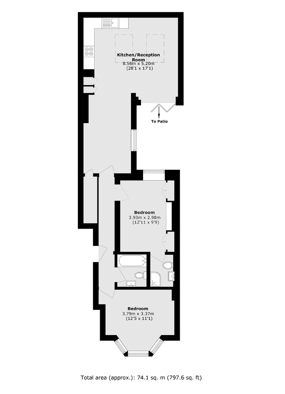 This modern two double bedroom, two bathroom flat consists of wooden flooring throughout, high ceilings, a bright open plan kitchen and private outside space.
