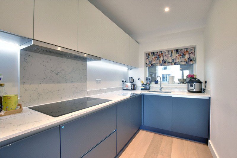 Measuring an impressive 1,294 sq ft, the apartment welcomes you into a spectacular 27ft reception room featuring hardwood flooring and a beautifully appointed contemporary kitchen complete with high-quality fitted appliances. This bright, expansive living space boasts uninterrupted views across Southern Park and the Ecology Park beyond. This level also includes a generous cloakroom and a separate utility cupboard.