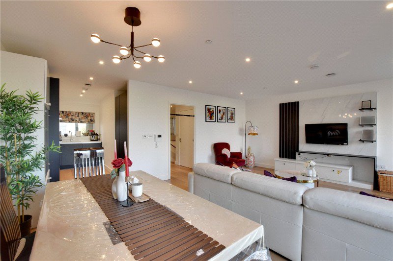 Set within a striking modern development built in 2022, this fabulous three-bedroom split-level apartment occupies the 2nd and 3rd floors and enjoys an unbeatable position at the base of the Greenwich Peninsula, directly opposite the wide-open green spaces of Southern Park.