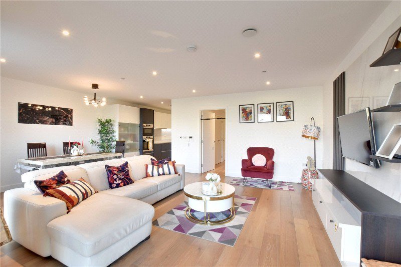 Guide Price £700,000-£725,000. Set within a striking modern development built in 2022, this fabulous three-bedroom split-level apartment occupies the 2nd and 3rd floors and enjoys an unbeatable position at the base of the Greenwich Peninsula, directly opposite the wide-open green spaces of Southern Park.