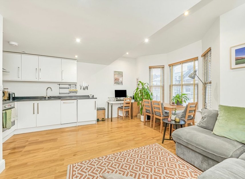 This exceptional first-floor period conversion has been finished to a high and elegant standard throughout, offering a bright open-plan reception room with a contemporary kitchen, a well-proportioned double bedroom, and a beautifully appointed bathroom. The property will be offered chain free and complete with a share of the freehold.