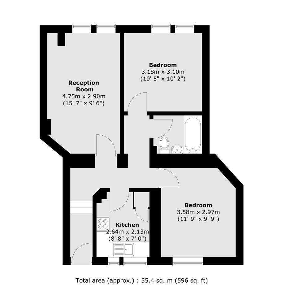 A two double bedroom property on the fifth floor with lift access. The property requires updating and has a separate kitchen and living room with scope to use as a third bedroom.