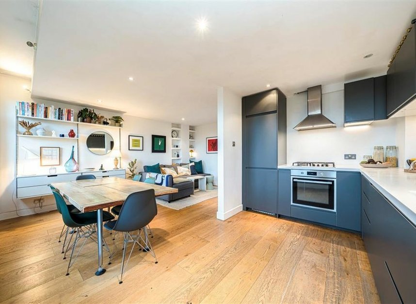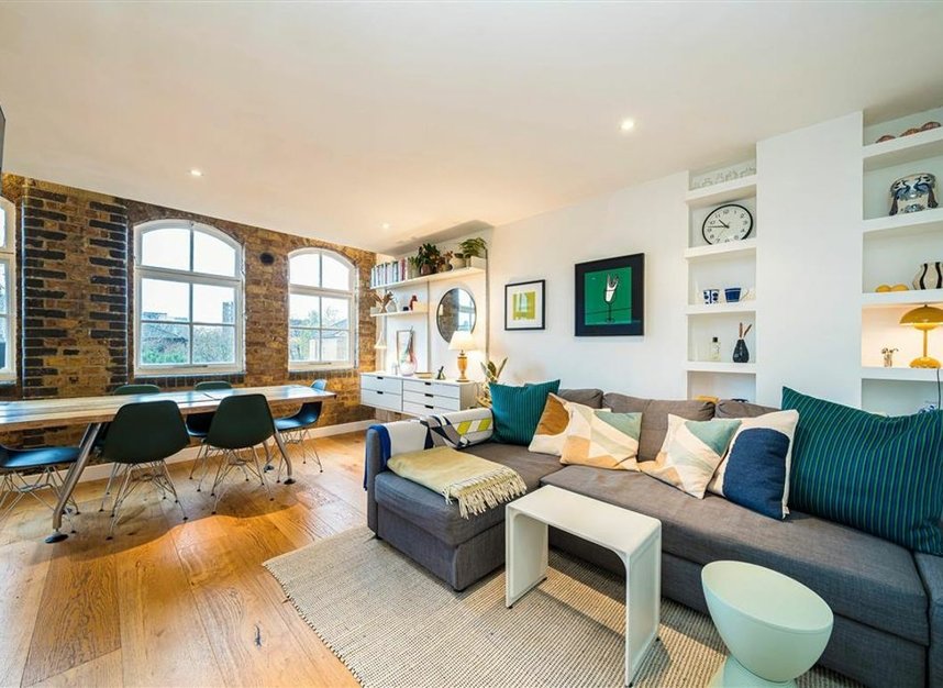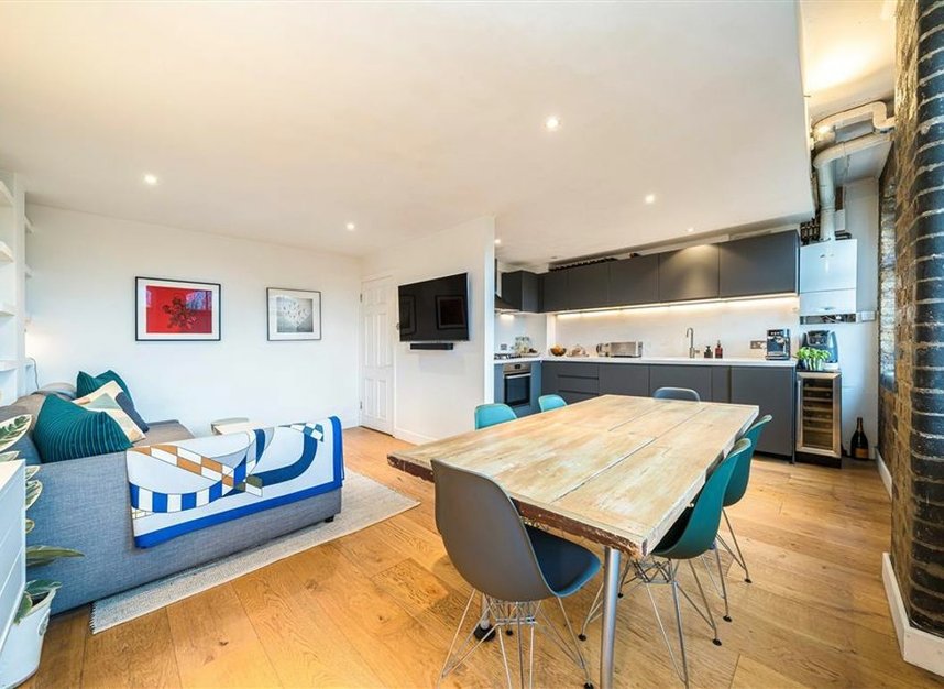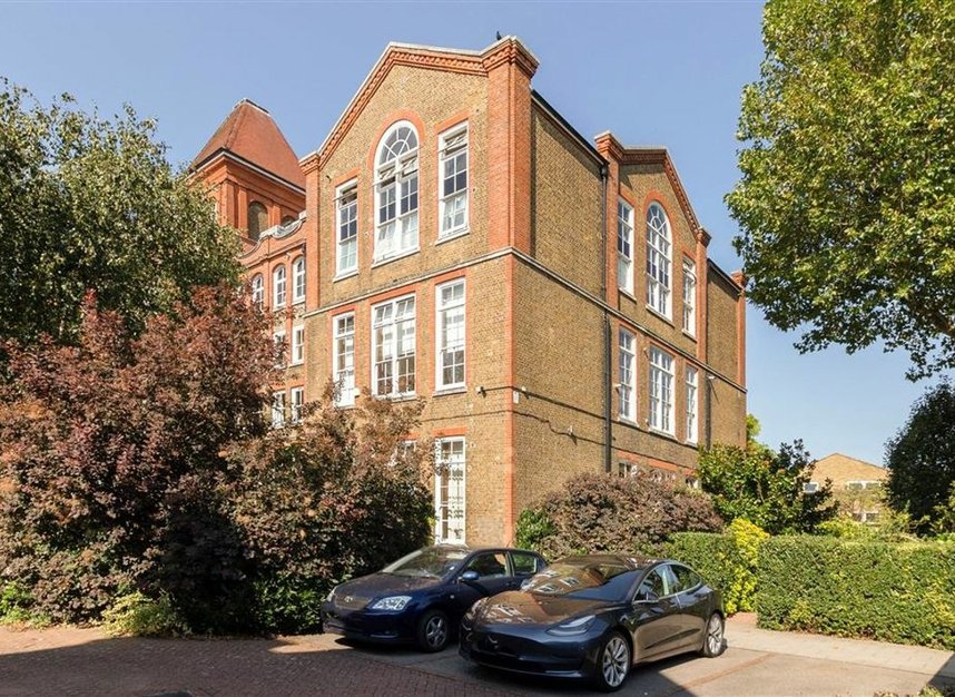 An immaculately presented, split level, former Victorian School conversion, with a generous open plan living room and high spec kitchen, with ample room for dining, two bedrooms, a modern shower room and ample built-in storage. Benefitting further from secure off-street parking, communal gardens and an on-site caretaker.