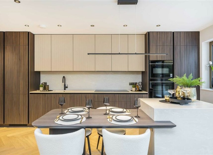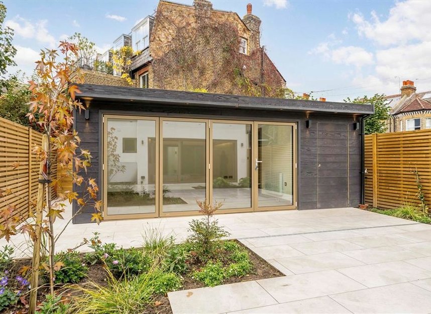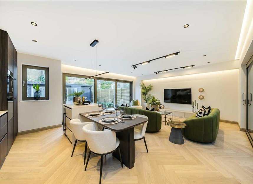 At the heart of the home is an inspiring open-plan kitchen/reception room, beautifully finished with bespoke cabinetry, premium appliances, and full-width sliding doors that open onto a private, landscaped garden.