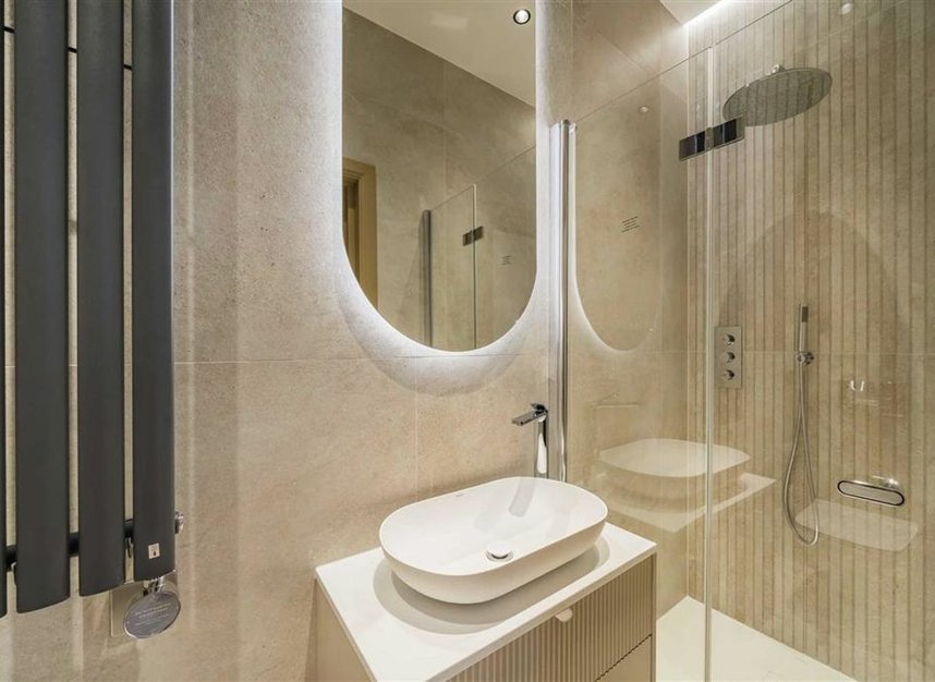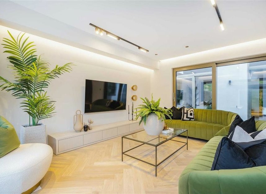This resplendent ground-floor residence has been fully rebuilt and extended to an exacting standard, offering a rare blend of timeless design and cutting-edge sustainability. Every detail has been meticulously considered, with an incredibly high level of attention placed on creating a carbon-neutral, energy-efficient home. The property incorporates a Vaillant aroTHERM plus 7kW Air Source Heat Pump, high-performance glazing, and advanced insulation to deliver outstanding comfort and efficiency.