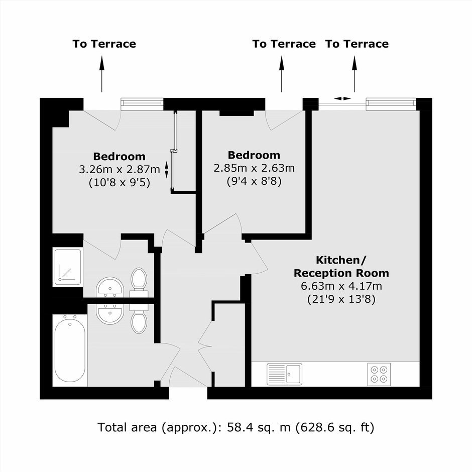 Both bedrooms are generously sized with excellent natural light, while the sleek kitchen and well-finished bathroom enhance the home's contemporary appeal.
