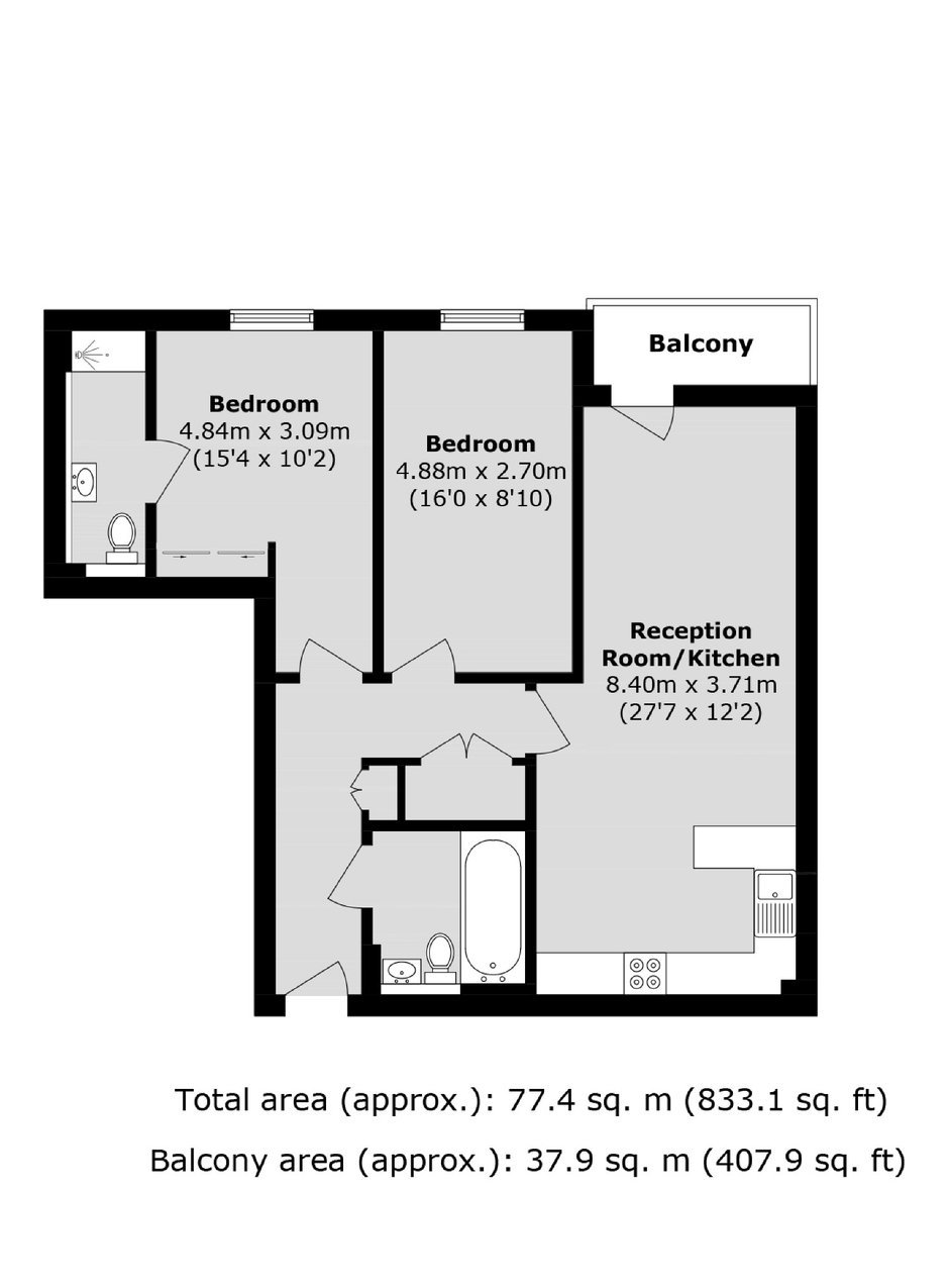 A two double bedroom, two bathroom modern apartment, complete with a private balcony, communal roof terrace with expansive views over the London skyline, underground parking and located in the centre of Wimbledon.