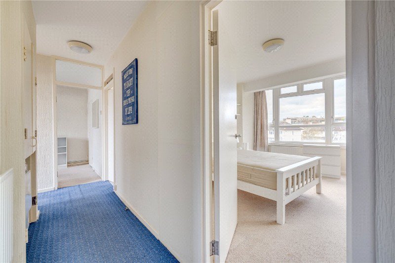 The flat is on the fifth floor of Joanna House. As you enter the property there is a kitchen, family style bathroom and reception room to the left hand side and then on the right hand side of the hallway are two good-sized double bedrooms. The larger of the bedrooms has a built-in wardrobe and private access to a small balcony.