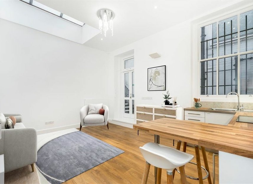 This studio flat is only a short walk away from both Knightsbridge and South Kensington Underground Station, as well as the beautiful surrounding gardens and Hyde Park.