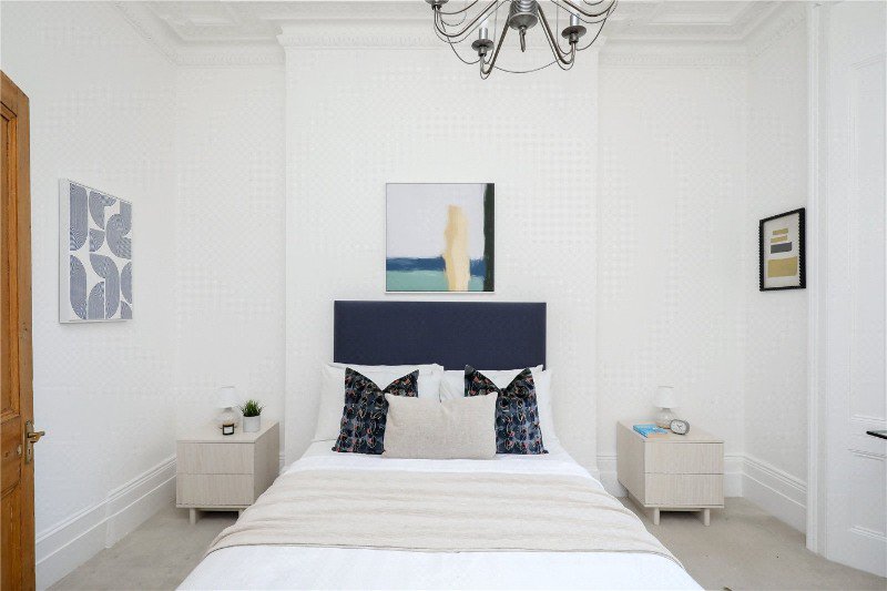This bright and spacious home features an impressive reception room with soaring high ceilings and elegant original period details, creating a sense of grandeur rarely found in one-bedroom flats. The generous double bedroom mirrors this charm, also benefitting from superb ceiling height and classic architectural features. The separate kitchen and bathroom are neatly positioned toward the rear of the property, offering practicality and privacy while maximising the open feel of the main living areas.