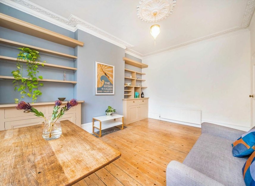 A two bedroom period conversion with a private south facing garden. Situated on the ground floor within a double fronted Victorian home the property has a spacious living room, two double bedrooms, family bathroom and eat- in kitchen. The property has many original features including wooden floors, bay window with shutters and cornicing. It has a long lease and being sold chain free.