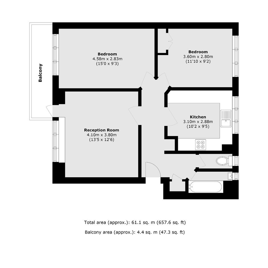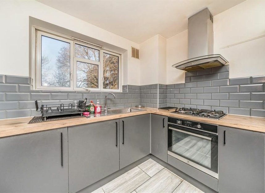 A two bedroom apartment with modern interiors in a private block with share of freehold. The property has a large living room with space to dine and access to a private balcony and a separate kitchen which has been recently renovated. The space offers two double bedrooms and a generous amount of natural light throughout. The hallway holds the separate bathroom and WC and plenty of storage.