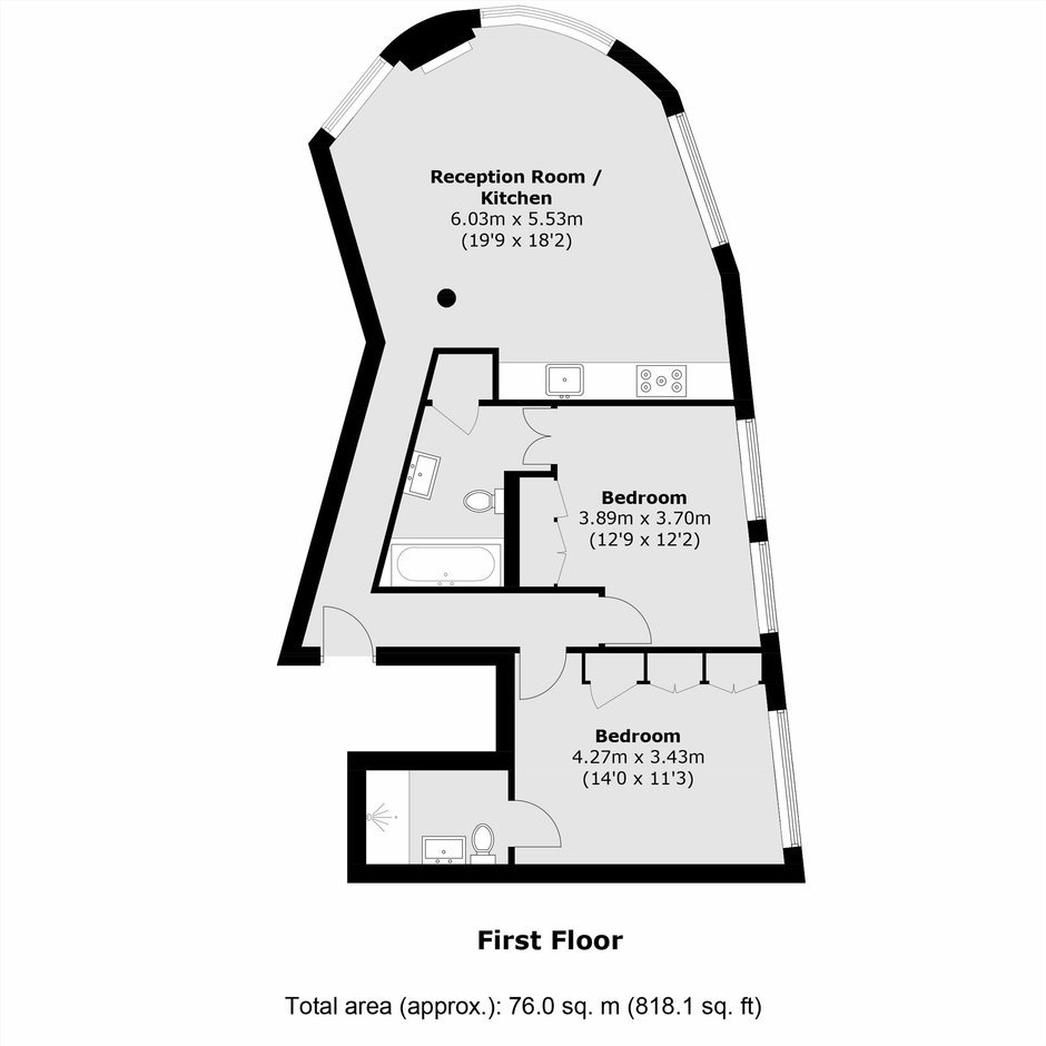 A stylish two double bedroom apartment in a converted pub. The lateral apartment has high ceilings, an open plan reception with a South facing triple aspect, wooden flooring, a modern kitchen and room to dine. Both bedrooms benefit from built in storage and en suite bathrooms.