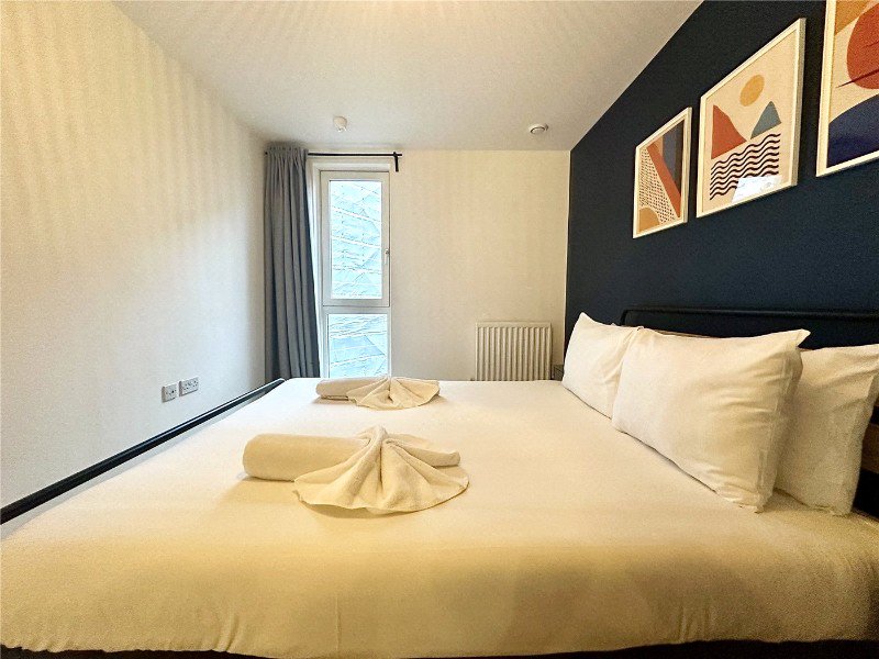Set within a contemporary canal-side development, this superb one-bedroom apartment offers bright, well-proportioned living space with modern interiors and neutral décor throughout. Positioned on the upper floors of the building, the property features a spacious reception room with French doors opening onto a Juliet balcony, an open-plan fitted kitchen, a double bedroom with built-in wardrobes, and a stylish bathroom.