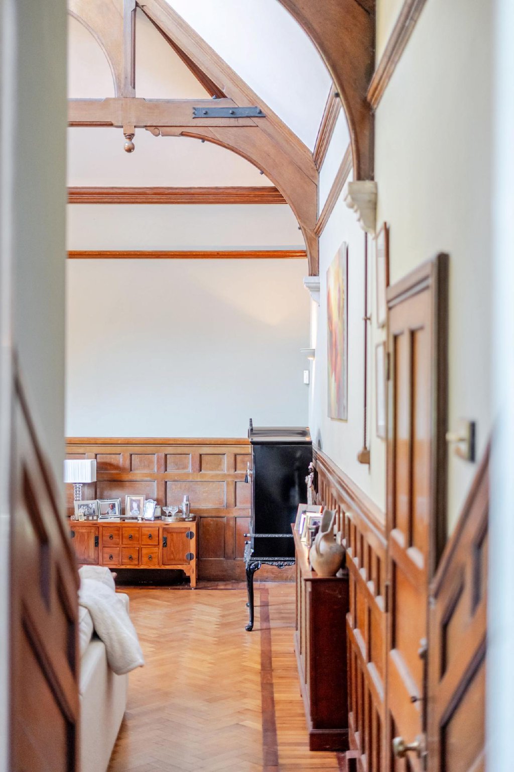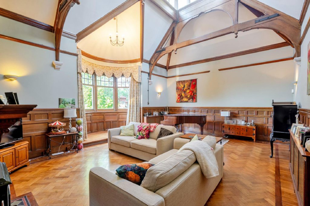 This magnificent and majestic, 3 bedroom, 2 bathroom, 2/3 reception room apartment within the well regarded Denewood building, offers a wonderful opportunity to acquire a spacious and character-filled ground-floor home in one of Woldingham’s most prestigious residential settings. Approached via its own private front door, from an area providing ample off road parking plus space to sit and contemplate life and the peace and quiet of your surroundings, Denewood is nestled within the elegant period building, in a sought after location, approached via a long sweeping driveway from Park Ley Road, this flat combines generous internal space with classic architectural charm, creating an inviting environment suited to a range of lifestyles. The accommodation is well arranged, boasting not one, but two magnificent reception rooms, with the impressive drawing room featuring an oriel bay window, tall ceilings with a lantern light, bathing the room in natural light and a fabulous fireplace with wood burning stove. The cozy Lounge, is a double aspect room with not one, but two large bay windows overlooking woodland and featuring an open fire within an Adam style, original fireplace and polished wood strip flooring, as well as deep skirting boards, paneling and high ceilings. In addition, the large kitchen/dining room is currently laid out to an open plan layout, offering ample space to create a fabulous room for entertaining. The spacious entrance vestibule leads to a large reception hall with a striking tiled floor.