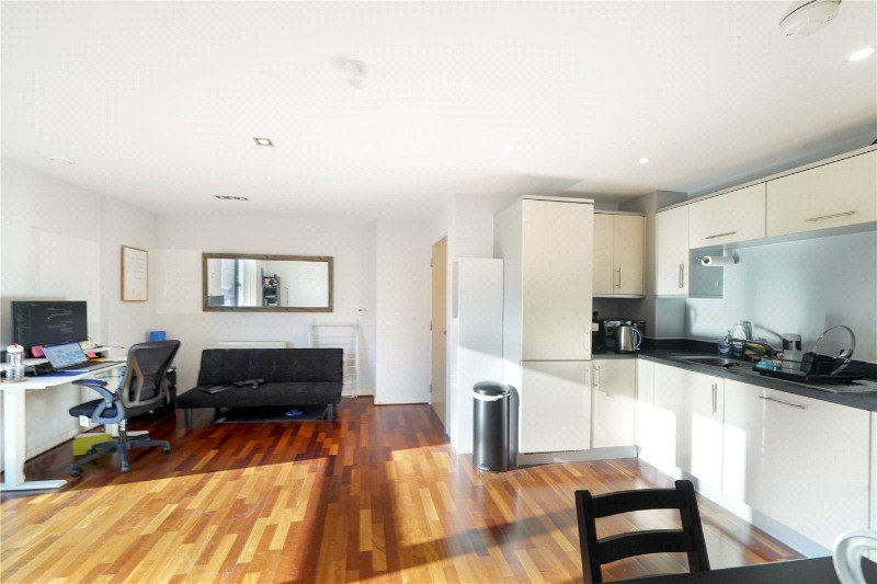 Modern and spacious one bedroom apartment which is located within a well-maintained building. The property is in good decorative order throughout and is offered to the market with no onward chain. It comprises one double bedroom, family bathroom and a spacious open-plan reception room with fully-equipped kitchen. The property further benefits from wooden floors, double-glazed windows, lift access, secure off-street parking space and access to a communal garden.