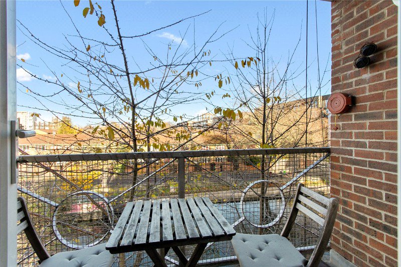 The accommodation comprises of a large reception room, which opens directly onto a private balcony boasting picturesque, views over the Regent’s Canal. A sizeable separate kitchen-diner offers excellent storage and workspace, making it perfect for those who enjoy cooking or entertaining. There are two well-proportioned double bedrooms with ample internal storage options in both bedrooms and an additional internal storage area next to one of the bedrooms and off the main hallway, a family bathroom, with a bath and overhead shower, completes the layout. The property further benefits from a secure, gated and allocated parking space, a rare find in this city location.