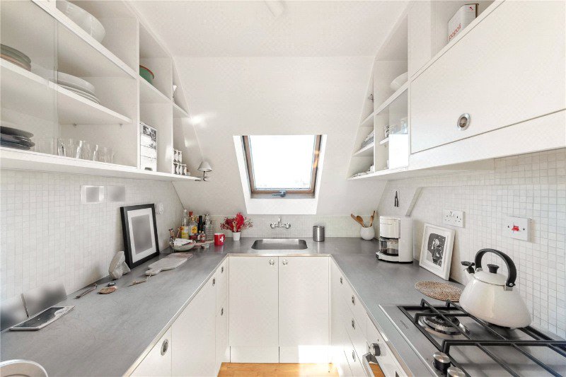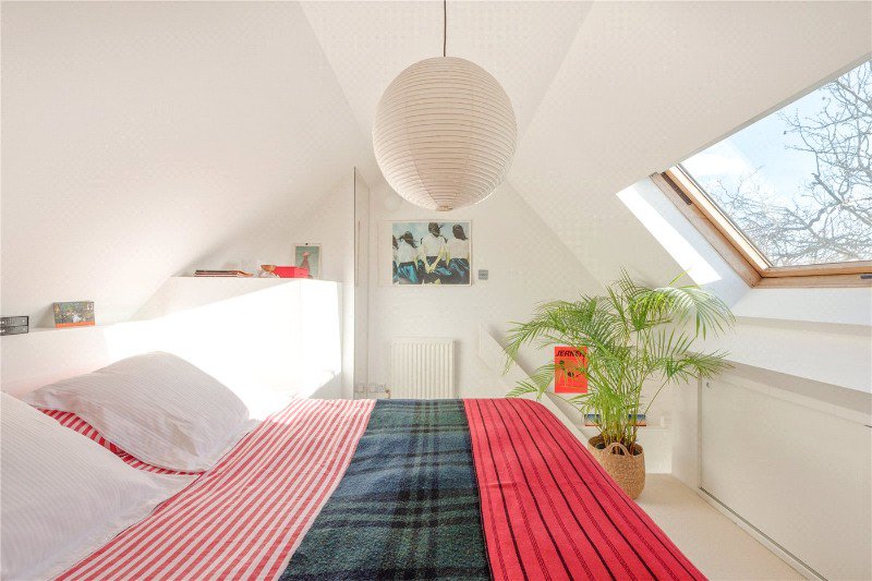 A sensational, one bedroom conversion positioned across the third and fourth floor of this former Church in Stoke Newington, N16. Split over the upper two floors, the property benefits from a south-north facing aspect allowing for abundance of natural light to pour through. Accommodation comprises of a spacious repletion room, leading through to a full equipped kitchen, and double sliding doors opening out to a sensational, south facing balcony. Upstairs you’ll find a good-sized double room, with plentiful storage and great views across neighbouring gardens. The property is completed with an upgraded, modern bathroom and a share of the freehold.
