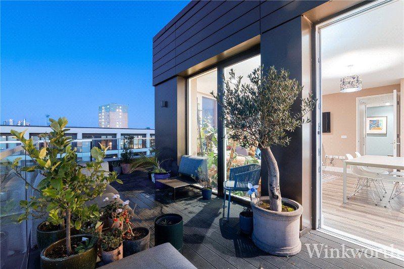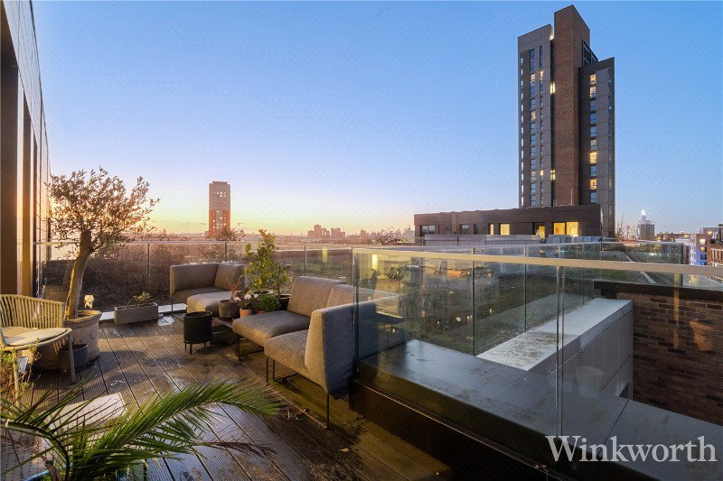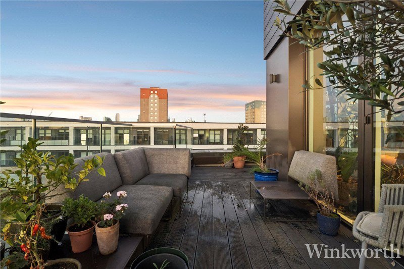 A gorgeous, light-filled three-bedroom penthouse apartment with an expansive wrap-around terrace and doors opening directly onto it from every room — perfect for indoor-outdoor living and entertaining. Inside, the generous open-plan living area features high ceilings and is flooded with natural light, while three bedrooms (one currently configured as a home office) provide flexible accommodation for families or professionals, complemented by ample storage throughout. Set within a modern development in popular Deptford, the property further benefits from a private allocated parking space included within the asking price, with the option to acquire a second side-by-side space by separate negotiation. Excellent transport links and local amenities are on the doorstep, making this an ideal choice for buyers seeking something genuinely distinctive in impeccable condition ready to move in with ease.