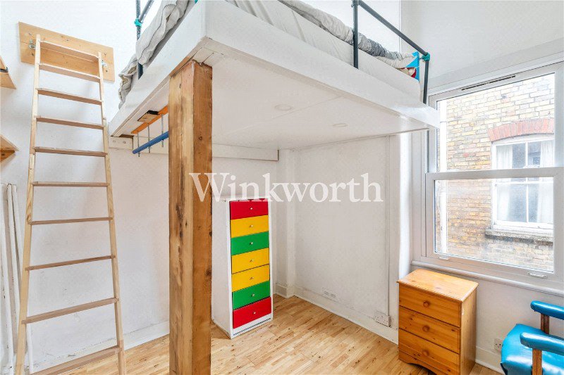 Both bedrooms are well proportioned. The first offers 4.86 m x 3.08 m of comfortable double accommodation, overlooking the rear of the building. The second is a brilliant modern space with an architect designed mezzanine sleeping level, leaving the lower floor free for a generous workspace or studio area. It is a clever layout that makes excellent use of the volume offered by the top floor position.